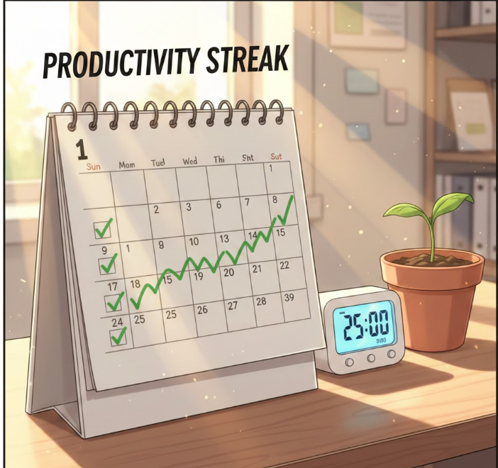 - 5분 보상: 25분이 지나면 반드시 쉽니다. 이는 뇌에게 "이 행동을 하면 꿀 같은 휴식이 온다"는 보상 체계를 학습시킵니다.